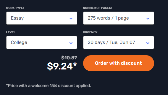 An order form consists of three sections. First, you need to specify your subject, type of work, academic level and decide on the deadline.