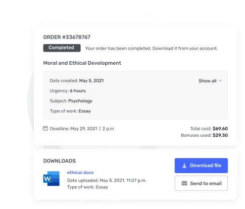 Download the document from your account or send it to your email. Check its quality and contact us in case of any complaints. We will initiate an instant free revision to fix your disapprovements and make the final result a 100% perfect match.